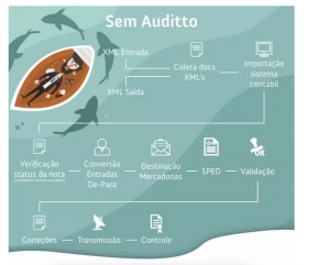 Na escrituração é a mesma coisa! E para facilitar, nós, inclusive, fizemos um desenho comparando o processo de escrituração manual com o processo automatizado. Nesse caso, a robotização é feita pela Auditto!